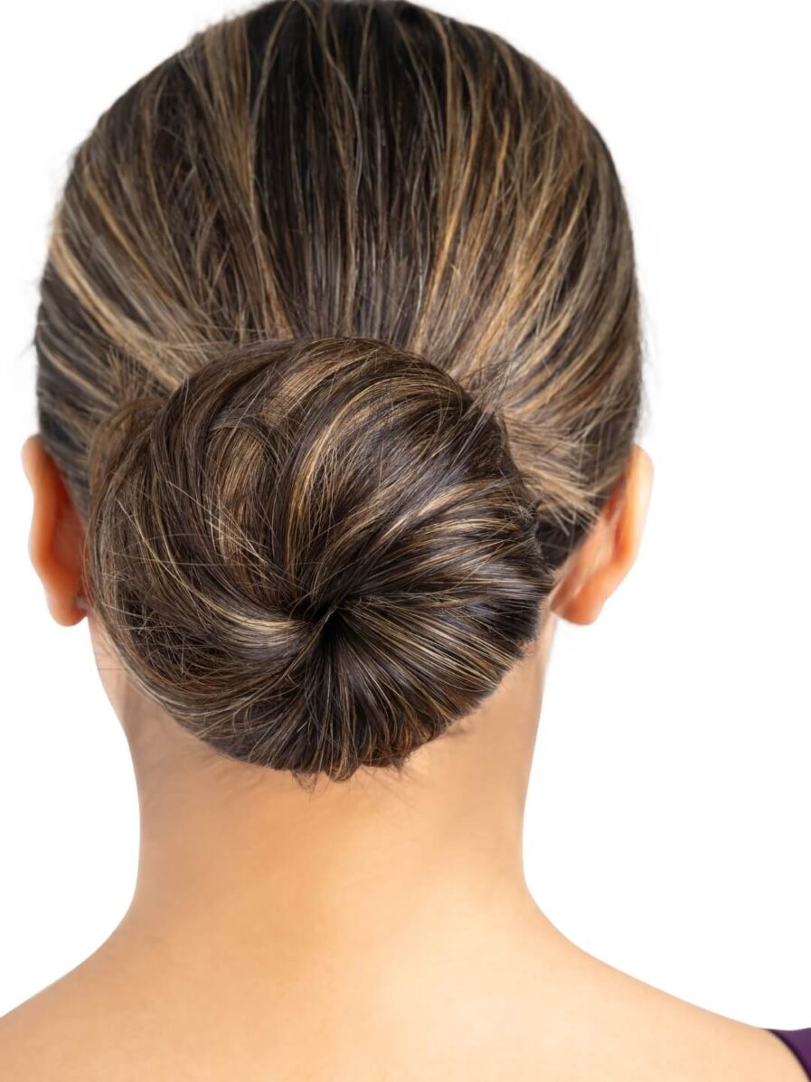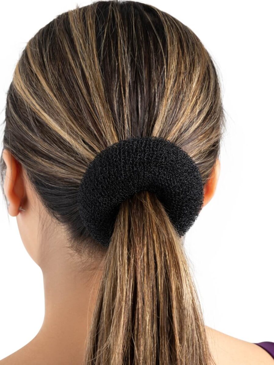 The Bun Builder will help you build a recital-worthy bun in 3 easy steps: 1. Pull hair into ponytail with elastic band 2. Pull ponytail through the center of the builder and slide to the base of the ponytail 3. Arrange hair around the builder and fasten with hair pins