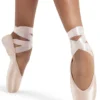 Roll to demi-pointe with ease in the Donatella #2 Shank Pointe Shoe. This premium pointe shoe has a moderate, slightly tapered toe box and a firm, 2″ leather board shank. Features built-in, plush inner lining for extra comfort and a wide platform for much needed balance at the barre. The slight “U” shaped throat flatters the arch and creates an overal sleeker appearance. Ideal for a moderate (Greek) foot. Pro Tip: When attaching Bunheads® ribbons and elastics to pointe shoes that have rose colored lining, a medium needle with a small eye works best. Suggested Fitting: For first time pointe shoe shoppers, we recommend a professional fitting at our retail store.