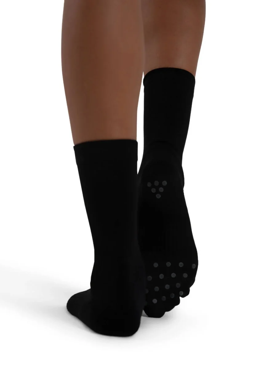 Lifeknit™ Calf Length Sox are seamlessly engineered for movement. Ideal for dance, training, and recovery, this crew sock prioritizes comfort, support, and compression. Strategically placed compression points within the sock reinforce and lift while the durable cushioning absorbs shock to improve performance. Wicking yarn enhances moisture ventilation and overall breathability. Our Lifeknit™ Calf Length Sox prevents odor and bacteria while distributing body heat for all day comfort. The soft base also creates a second skin feel that fits along the arch of the foot like no other. Slip-free traction at the ball of the foot and other critical contact points for maximum foot-to-floor grip