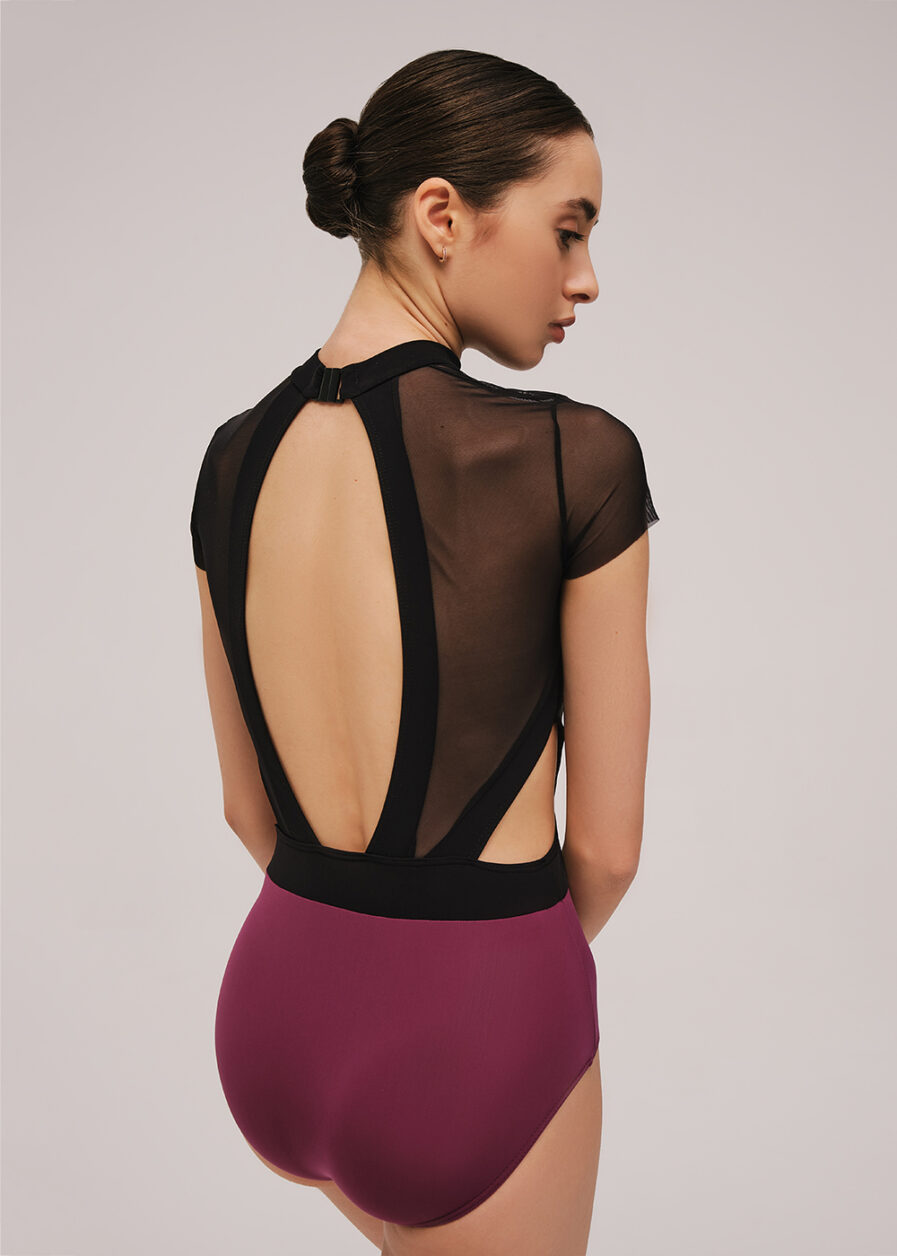 Color blocking has never looked more stylish than in this absolutely fabulous cap sleeve leotard! The side cut outs and long keyhole on the back are completely haute couture.